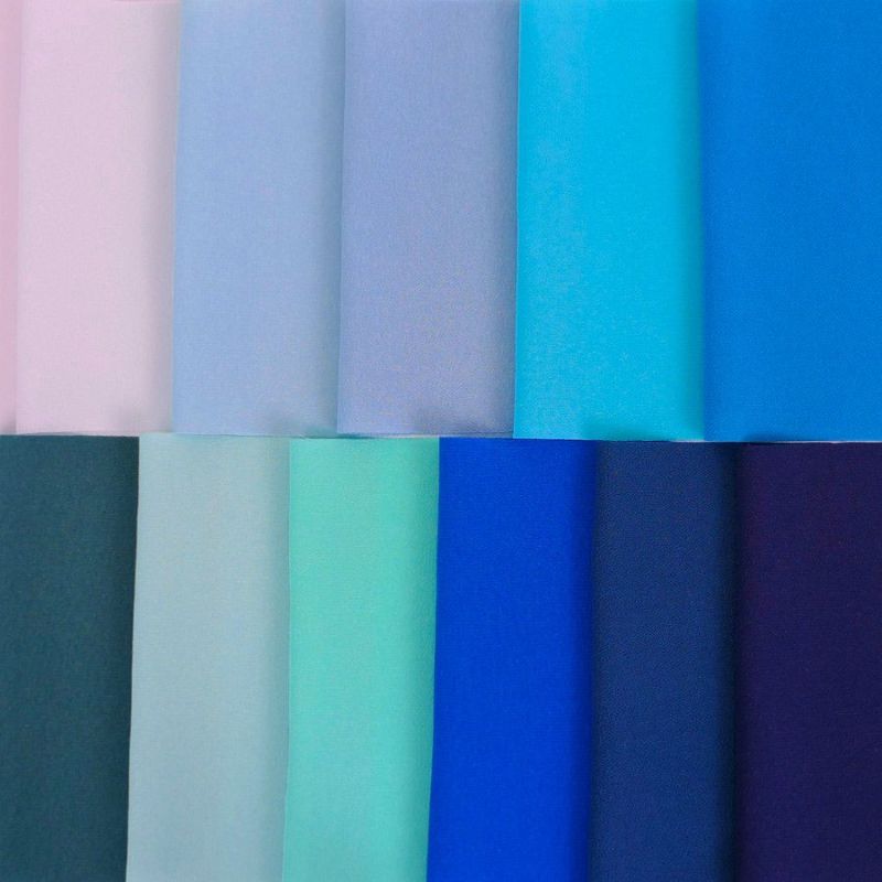 商品案内つまみ細工やちりめん手芸に便利!青系の無地一越ちりめんを11色セットで。