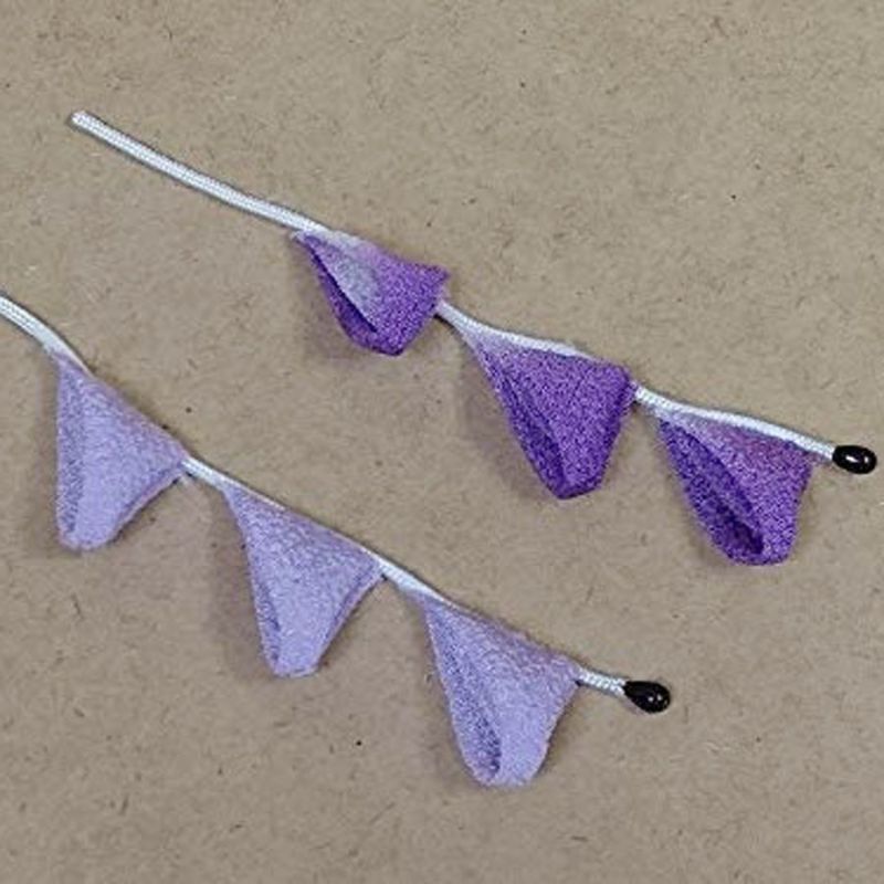 「剣つまみ」「丸つまみ」の技法で作る手芸。藤色のグラデーションがきれいです。
