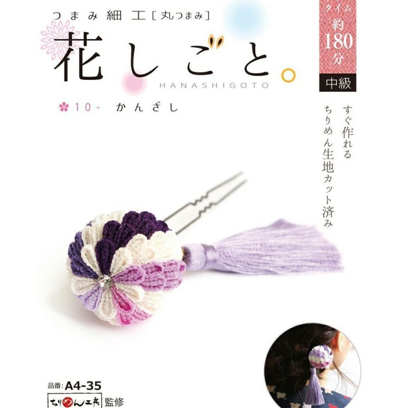 豪華なかんざし手作りキット つまみ細工キット・花しごと10/紫の丸い花かんざし(丸つまみ)