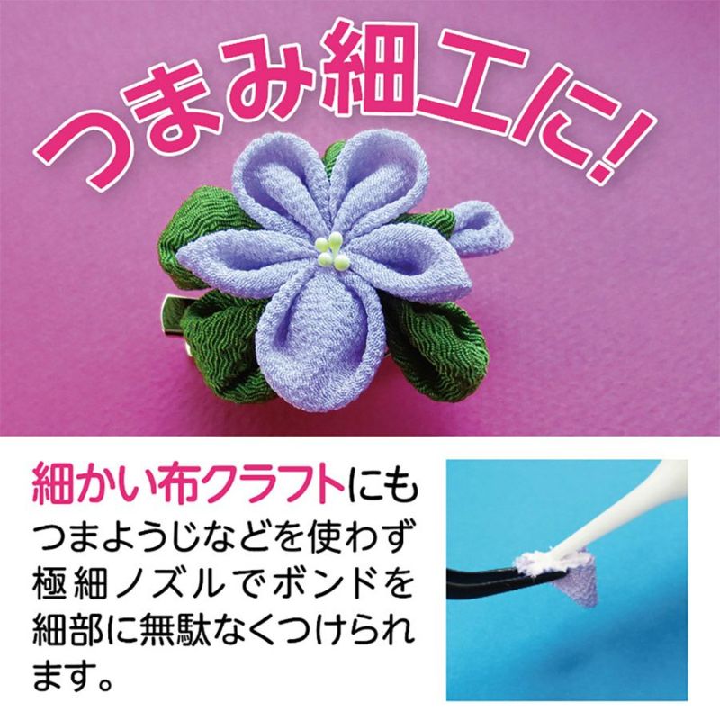 つまみ細工のような細かい布クラフトにも、つまようじなどを使わずボンドを細部に無駄なくつけられます。