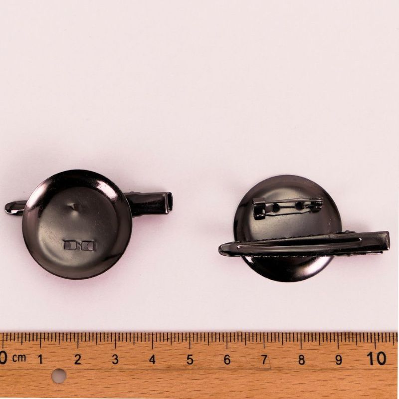 商品案内直径約2.8cmのブローチ台・5個セット。裏面に安全ピンとクリップが付いている2WAYタイプです。