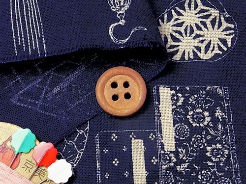 いろんな柄があってかわいい♪ 生産終了/在庫限り 和風コットン生地・匠 日本の伝統調度品(黒) 10cm単位 切り売り