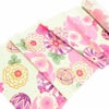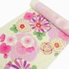 ●パステル調の色づかいが全体を可憐にいろどり、女の子らしいやわらかな印象に。地色はごく薄い黄味がかったグリーンで、ピンクや紫の花を上品にまとめています。