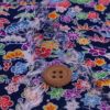 ちりめん細工の小物づくりに 一越ちりめん生地 吉祥植物柄(紺) 10cm単位 切り売り