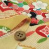 ●黄色っぽいベージュ地に染め出された古典柄は、上品でやさしい印象。このような色の古典柄ちりめんは珍しいので、手元にあると手作りの幅も広がりますね。