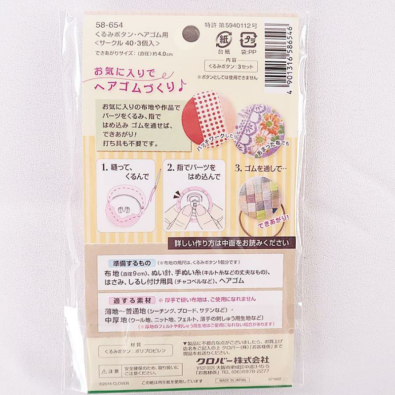 オリジナルのヘアゴム作りに! くるみボタン ヘアゴム用<オーバル45・3個入> 4.5×3.5cm