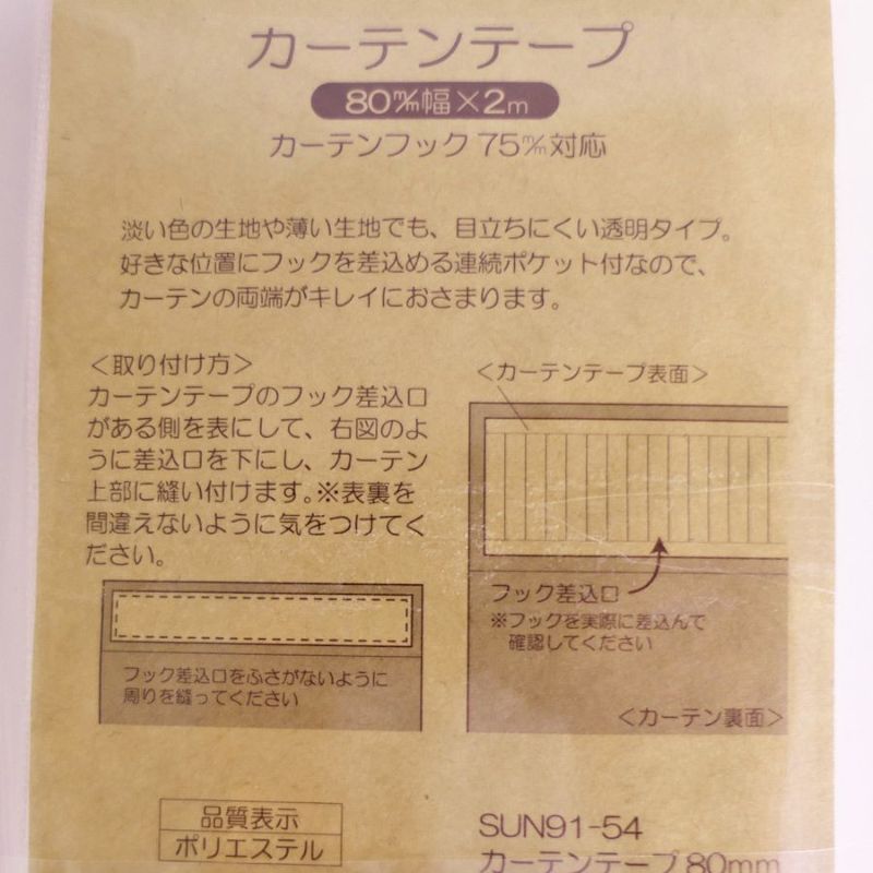 本格的な手作りカーテンに 透明カーテンテープ 80mm幅 2m入/1間分