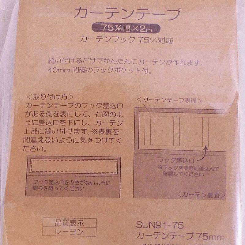 ハンドメイドカーテンに カーテンテープ 75mm幅 2m入/1間分