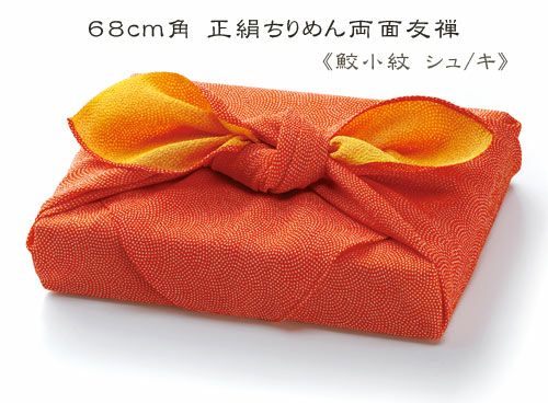 両面ともに美しい友禅染の風呂敷です。表に鮫小紋柄、裏に無地を合わせた、フォーマルにも重宝する商品です。