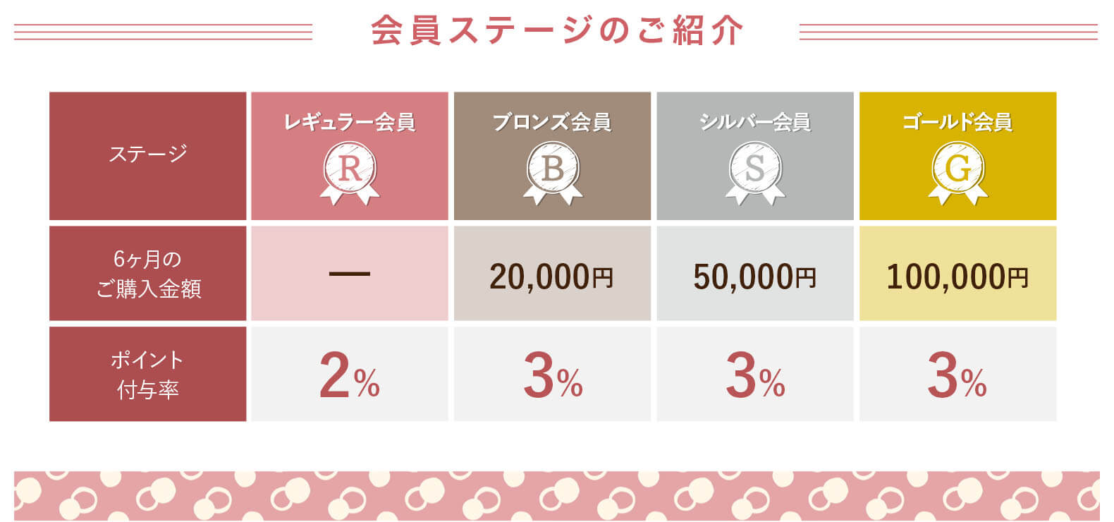 ご購入金額に応じて、下記の会員ステージ特典をご用意しております。