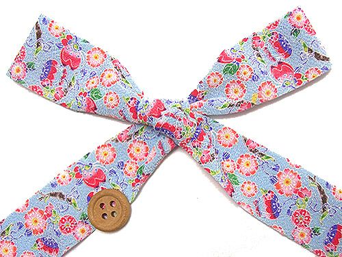 和りぼん3cm幅・桜に蝶(水色) 10cm単位 切り売り
